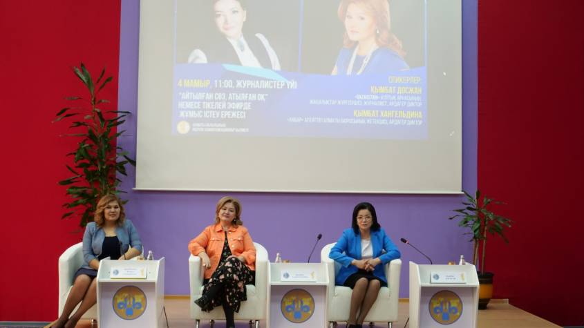 Телевизия саласында отыз жылдан астам уақыт еңбек етіп, журналистика саласының жілігін шағып, майын ішкен, танымал тележүргізуші Қымбат Хангелдина мен Қымбат Досжан, Талдықорған қаласындағы Журналистер үйінде тағлымды кездесу өткізді.
