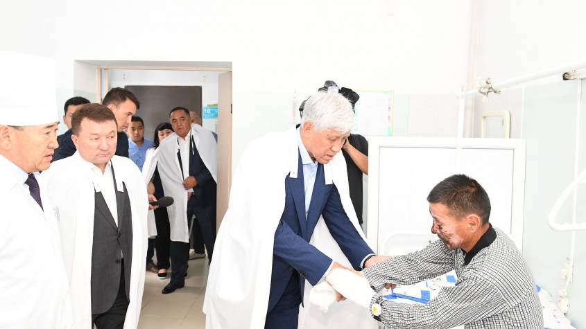 Бұдан кейін облыс басшысы орталық аудандық ауруханаға барып, өрттен зардап шеккен Ғабит Мақұстовтың денсаулық жағдайын сұрап білді. Тез қатарға қосылып, аяғынан тік тұруына тілектестігін білдіріп, оған қажетті барлық медициналық мүмкіндіктер жасалатынын атап өтті.