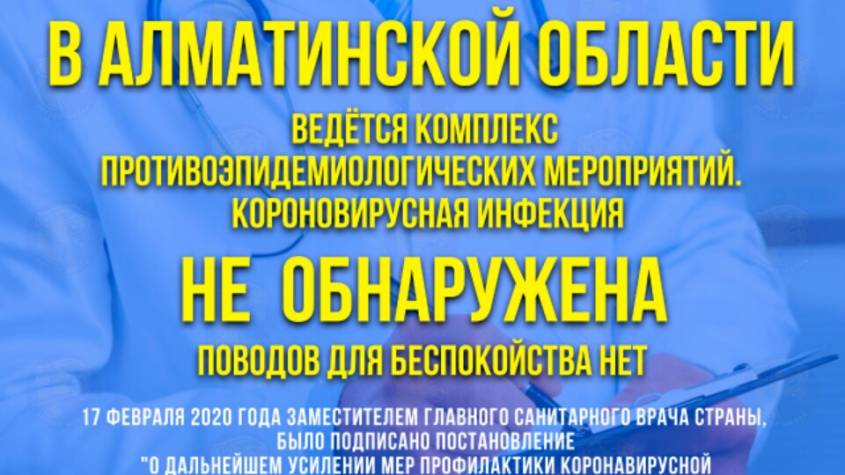 Алматы облысында коронавирус инфекциясы анықталған жоқ.
