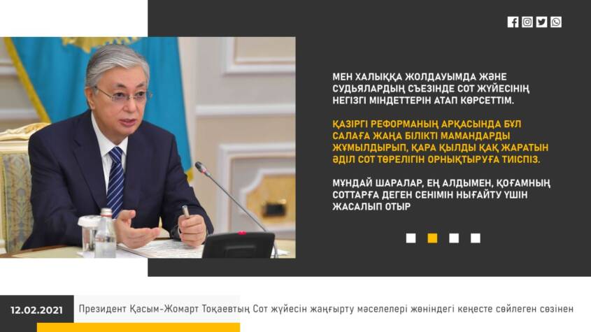ПРЕЗИДЕНТ ҚАСЫМ-ЖОМАРТ ТОҚАЕВ СОТ ЖҮЙЕСІН ЖАҢАРТУ МӘСЕЛЕЛЕРІ ЖӨНІНДЕГІ КЕҢЕСТЕ СӨЙЛЕГЕН СӨЗІНЕН