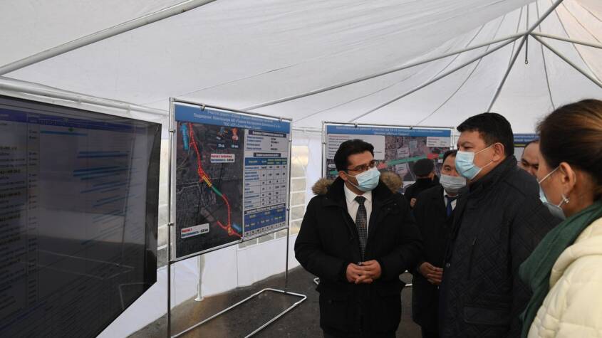 Аким области Канат Бозумбаев ознакомился с ходом строительства участка автомобильной дороги Алматы – Бишкек в районе рынка «Алтын орда»