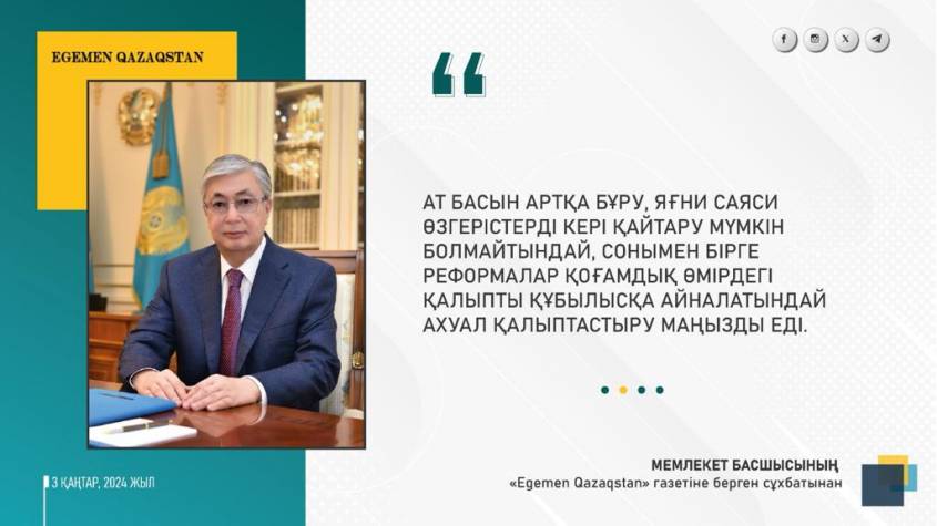 ҚР Президенті Қасым -Жомарт Тоқаевтың “Егемен Қазақстан” газетіне берген сұхбаты