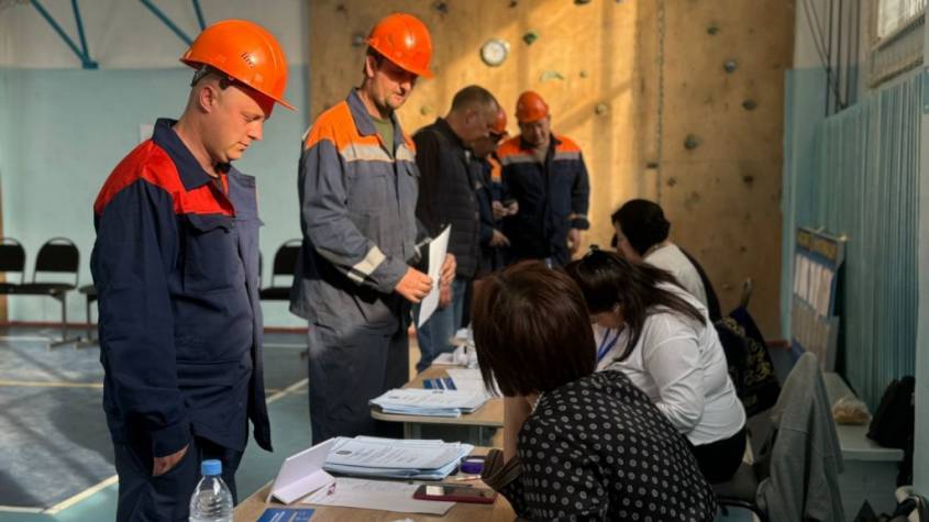 Текелі қаласындағы № 449 дауыс беру учаскесінде «Текелі энергетикалық кешені» ЖШС 17 жұмысшысы бір мезгілде күндізгі ауысым кезінде өз таңдауларын жасады