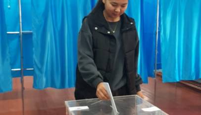 Ескелді ауданы, Бақтыбай ауылындағы №113 дауыс беру учаскесінде 18 жасқа толған Таласпаева Айдана алғашқы рет дауыс берді.