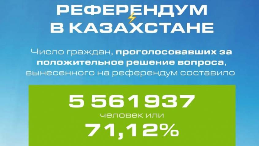 Референдумға шығарылған мәселені оң шешуге дауыс берген азаматтардың саны 71,12% құрады. Бұл ел тұрғындарының оң өзгеріске деген қолдауын анық көрсетеді. Жақын арада толық қорытындысы шығады. Алайда, бүгінгі күннің өзінде маңызды науқанның нәтижелері көңіл қуантады.