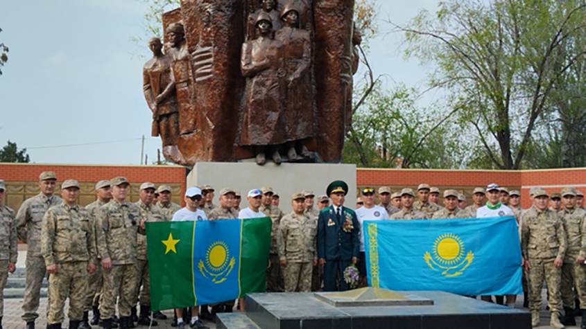 Марафоншыларды марапаттау рәсімі Екінші дүниежүзілік соғысқа қатысушыларға қойылған ескерткіш маңында өтті. Шарада шегара қызметінің ардагері Георгий Полусмаков бейбітшілік пен тыныштық орнаған еліміздің көгін бұлт шалмасын деген тілек арнады.