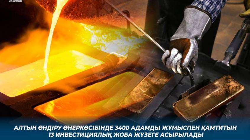 Алдағы үш жылда Қазақстанның алтын өндіру саласында жалпы құны 780 миллиард теңгені құрайтын 13 инвестициялық жобаны іске асыру жоспарланған. «QazIndustry» АҚ Жобаларды іске асыруға мониторинг жүргізу және талдау дирекциясы ақпараты бойынша аталмыш жобалар аясында 3400 жаңа жұмыс орны құрылатын болады.