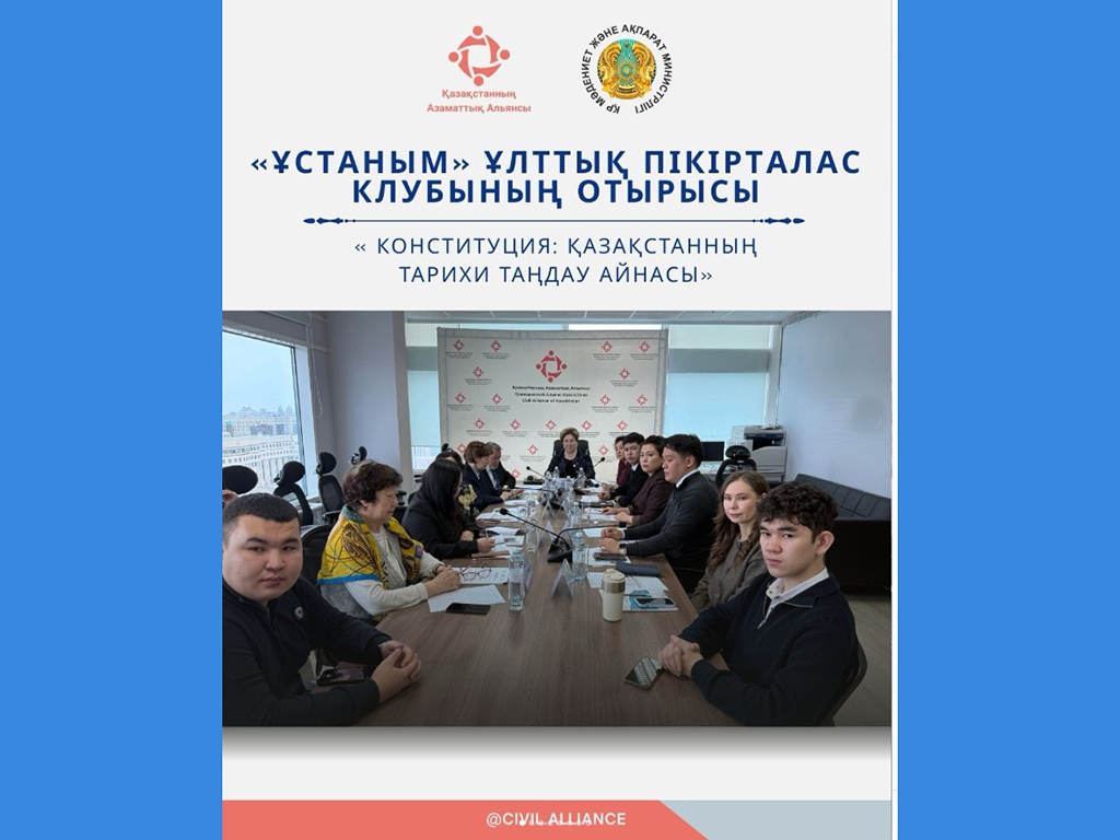 Қазақстанның Азаматтық альянсы «ҰСТАНЫМ» Ұлттық пікірталас клубының «Конституция: Қазақстанның тарихи таңдауының айнасы» тақырыбына арналған отырысын өткізді. Талқылау елімізде жүзеге асырылып жатқан конституциялық өзгерістер аясында өтті.