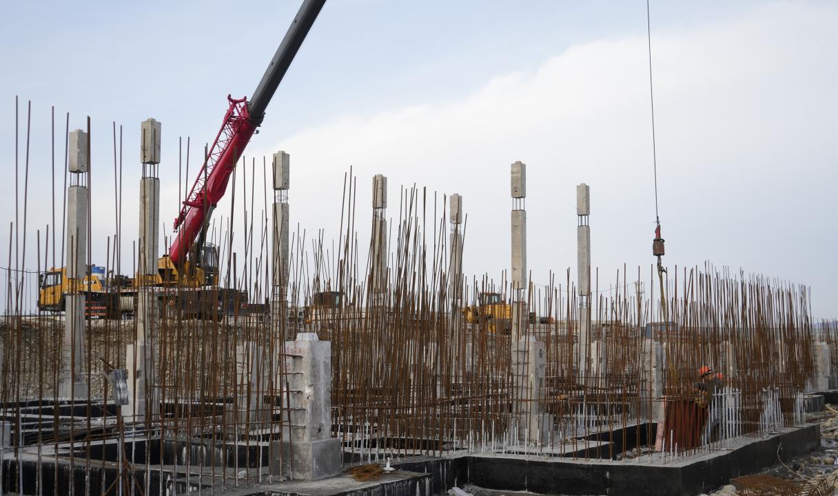 Қазіргі кезде нысанда қабырғаны арматуралау, іргетасты гидрооқшаулау, бетондау, қайта толтыру, бағандар орнату жұмыстары жүргізілуде. Құрылыс-монтаж жұмыстарына 65 адам, 12 бірлік арнайы техника жұмылдырылған.