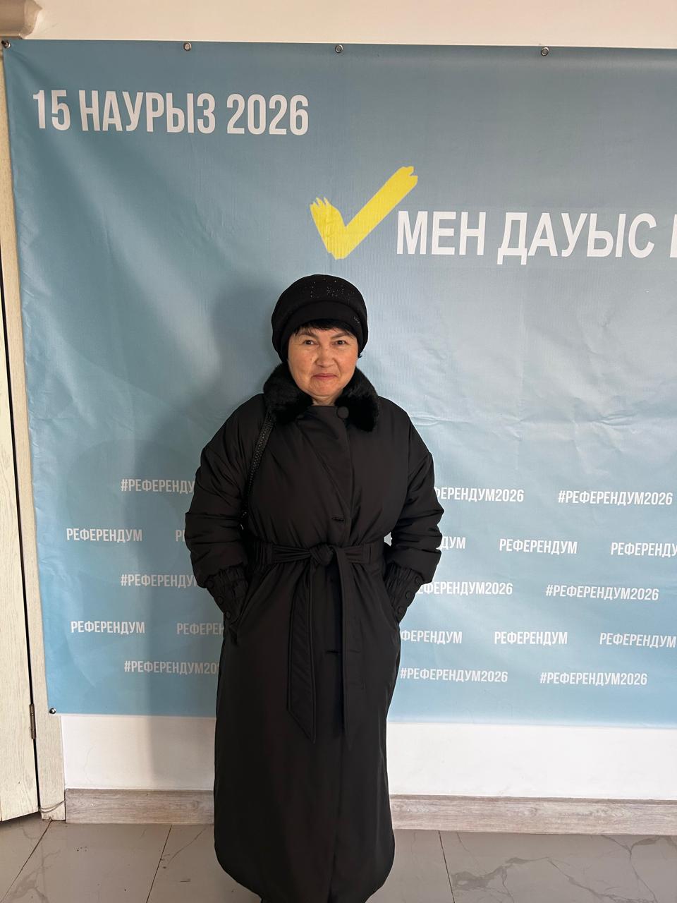 Сайлау учаскесіне келген аудан тұрғыны Албанбекова Бибігүл референдумға қатысып, өз таңдауын жасады. Ол елдің болашағына қатысты шешім қабылдау кезінде әрбір азаматтың дауысы ерекше маңызды екенін атап өтті.