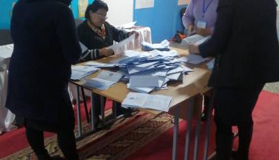 629 сайлау учаскесіндегі сайлау аяқталып, комиссия мүшелері бюллетендерді санап жатқан сәт.